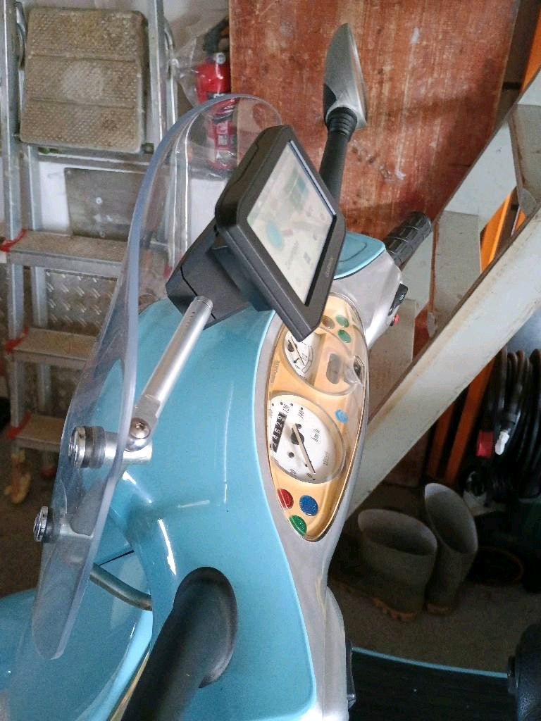 Individuell angepasster Garmin-Halter für eine Vespa. Perfekt integriert, passgenau montiert und natürlich mit dem typischen 3DFLX-Anspruch an Funktion und Design.